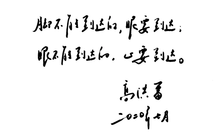 7月30日,在《鲁商发展改革转型创新训练营营员手册》编写完成之际,省商业集团有限公司(简称鲁商集团)党委书记、董事长兼山东文旅集团董事长高洪雷,为鲁商发展改革转型创新训练营题字寄语——“脚不能到达的,眼要到达;眼不能到达的,心要到达”,以此勉励创新训练营学员不断进步。