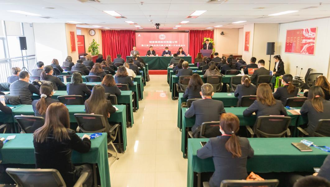 2021年12月31日,银座集团召开第三届工会会员代表大会暨职工代表大会第一次全体会议,鲁商集团党委常委、董事、总审计师、工会主席刘德华,集团政工教科部部长、教育控股董事长张高扬,银座集团党委副书记李中山、党委委员刁玉莉出席会议。