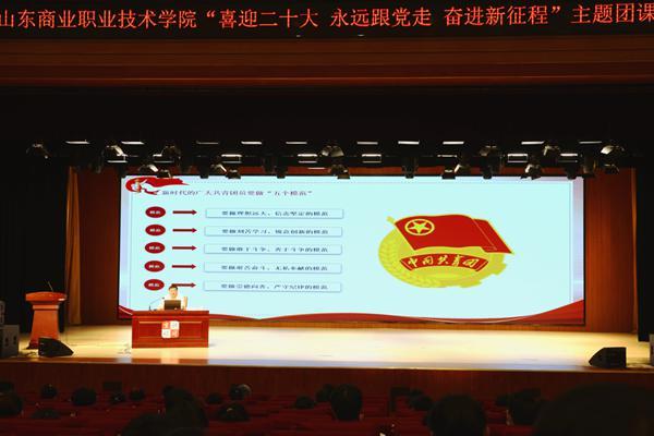 5月27日,山东商院举办“喜迎二十大 永远跟党走 奋进新征程”主题团课。学院党委书记张志东以《坚定信念跟党走扬帆起航新征程》为题,通过线上线下的方式为1000余名师生代表讲授主题团课。
