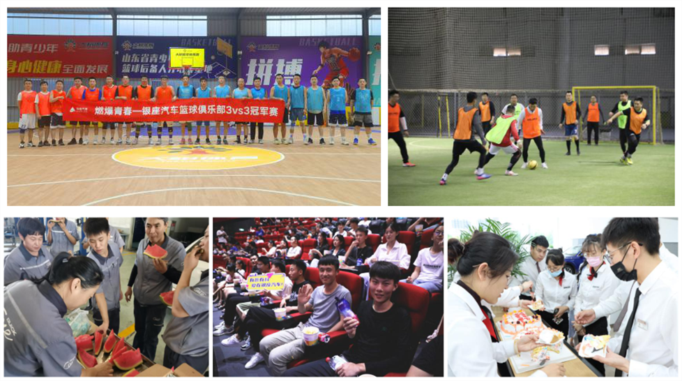 银座汽车工会为售后车间和项目工地等高温岗位员工送上冰爽解渴的瓜果及饮料、冰糖绿豆汤等饮品,并在高温天气时免费供应雪糕;为夏日车展现场拼搏的销售顾问贴心准备润喉糖、冰咖啡、坚果礼包、电动牙刷、耳机等能量礼包,还专门定制了可乐和精美午餐,让员工切实感受到公司的关怀;举办夏日足球赛、篮球赛、观影活动和集体生日会,让员工释放激情、感悟人生、倾听祝福。