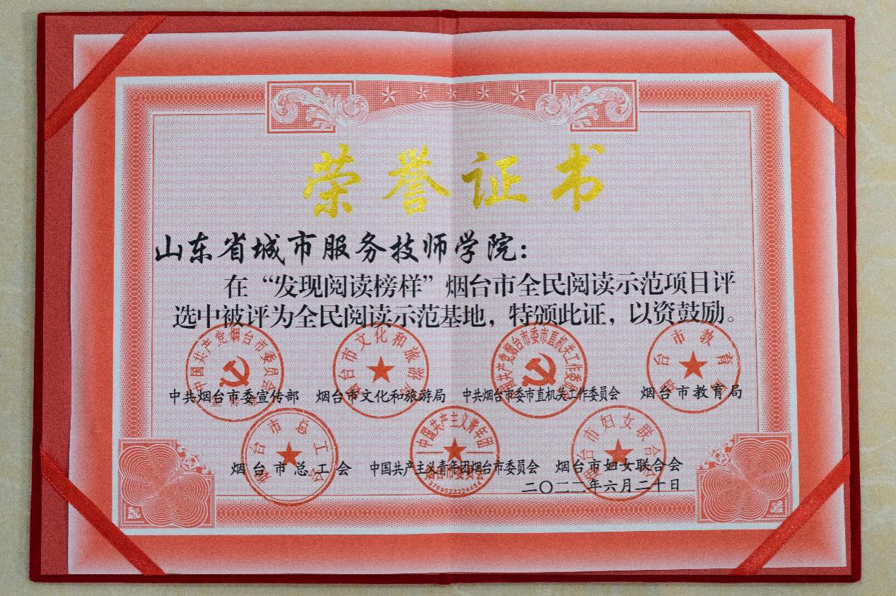 近日,由烟台市委宣传部、市文旅局、市教育局、市总工会和共青团烟台市委、市妇女联合会联合举办的“发现阅读榜样”烟台市全民阅读示范项目评选活动圆满结束,省城市学院获得“全民阅读示范基地”称号,是此次活动中获此称号的唯一院校。