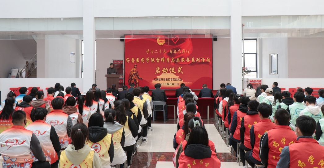 3月3日,齐鲁医药学院举行雷锋月志愿服务系列活动正式启动,副院长杜敏出席启动仪式并讲话。