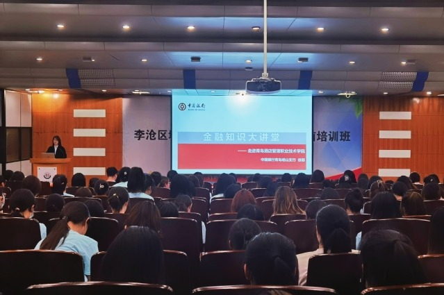 中国银行青岛崂山支行相关负责人、青岛酒店学院师生代表400余人参加讲座。