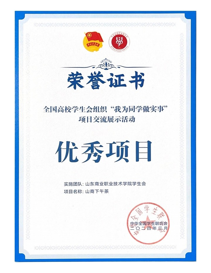 3月24日,由共青团中央指导,全国学联主办的全国高校学生会组织“我为同学做实事”项目交流展示活动圆满闭幕,山东商职学院申报的“山商下午茶”被评为交流展示活动“优秀项目”。