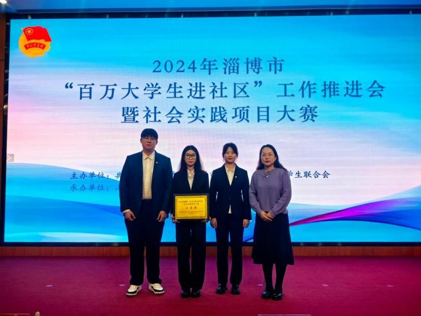 近日,共青团淄博市委、淄博市教育局、淄博市学生联合会联合主办2024年全市“百万大学生进社区”社会实践项目大赛,本场比赛共有来自全市各高校、高职院校的16支队伍参赛。经过激烈角逐,学校两支队伍脱颖而出,分获二、三等奖。