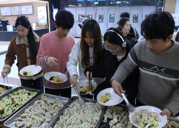 学校还为学生们举办了一场温馨且富有意义的冬至活动,让鲁医学子在冬日里感受到了浓浓的节日氛围与校园温情。同学们热情高涨,纷纷大显身手,不一会儿一盘盘饱含着浓浓心意的饺子便摆满了桌面。与此同时,学校食堂被精心装扮一番,五彩的气球、喜庆的彩带,瞬间将寒冷的冬日装点得暖意融融。一场冬至里的文艺表演呈现在眼前,来自各学院的表演者们,通过歌曲、舞蹈、相声等精彩的节目表演将活动气氛推向了高潮。