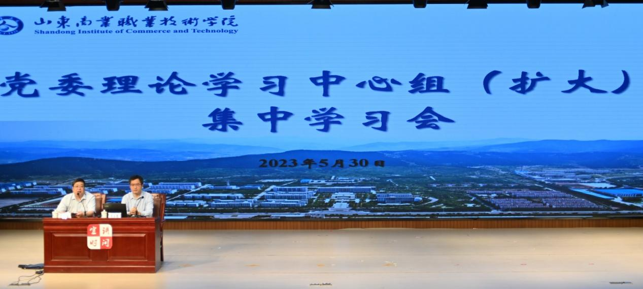 山东商院党委理论学习中心组成员参加学习会,学校中层正职领导干部、各党总支副书记、宣传委员、统战委员、全体专兼职辅导员及安保一线队伍列席。
