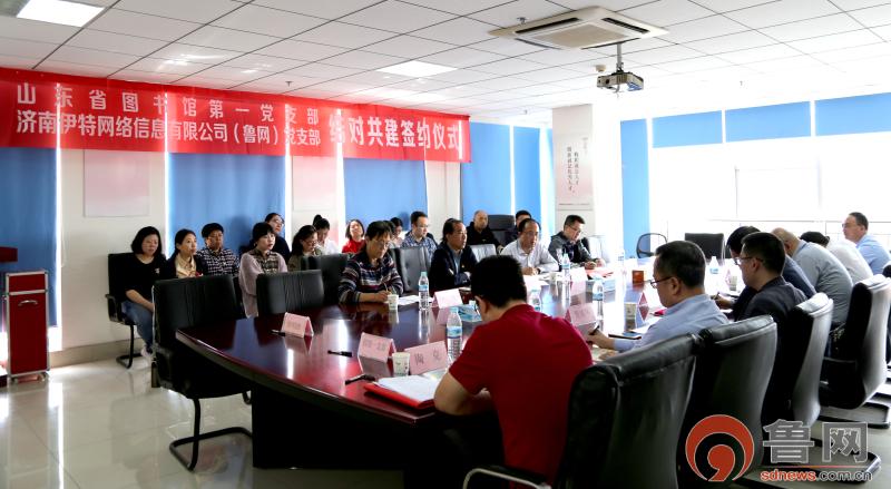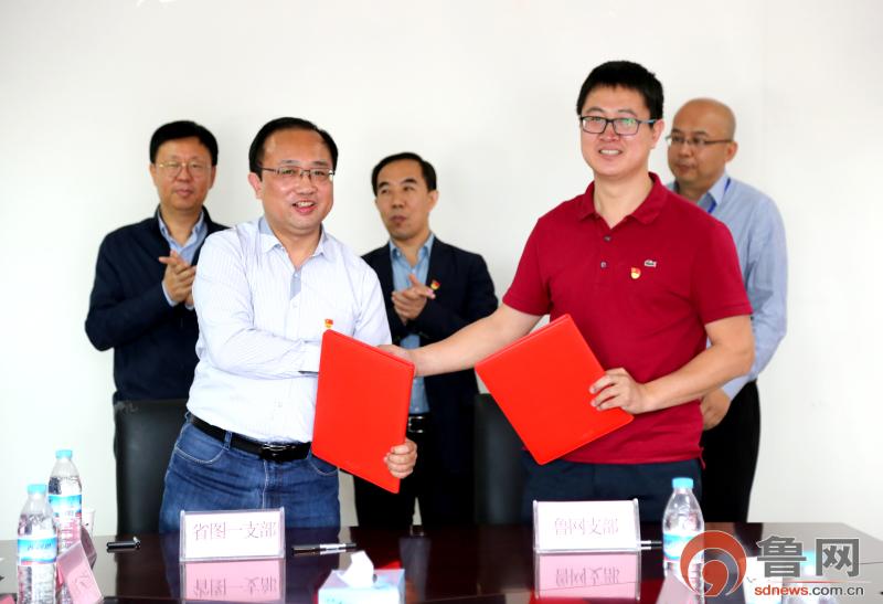 读书强国,共创先锋。5月14日上午,济南伊特网络信息有限公司(鲁网)党支部与山东省图书馆(以下简称省图)第一党支部签署结对共建协议。会上,省商业集团有限公司(以下简称鲁商集团)党委常委、组织人力资源部部长李林与省图党委书记、馆长刘显世为鲁网“东山读书会”揭牌并讲话。鲁商传媒集团党委书记、董事长孙超,鲁商传媒集团党委副书记、总经理、总编辑兼鲁网董事长庞道锋出席。