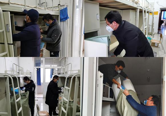 隔离场所建设期间,道路交通暂未完全恢复,这给老师们到校工作带来了诸多不便。学校餐厅尚未供餐,餐饮行业也未复工,老师们纷纷从家中带水带饭,自行解决伙食问题。天气严寒,但老师们的“战斗”热情丝毫不减。20多名党员干部在充分做好个人防护的情况下,克服重重困难,认真清扫房间、搬运物品、卫生消毒、设置医用物品,最终收拾整理出36个干净卫生、设施齐全的房间作为隔离场所。按照疾控中心规定,均已达到了作为隔离场所的标准要求。