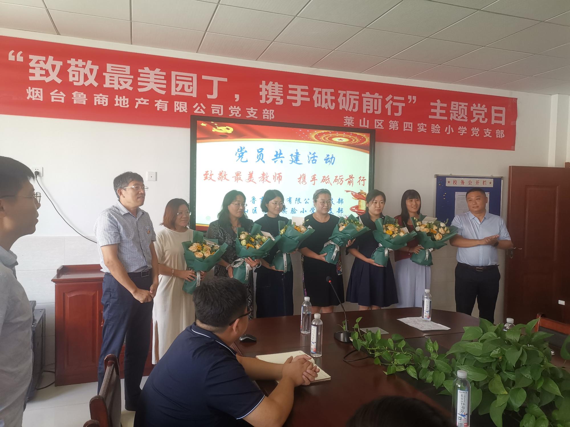 鲁商发展烟台公司党支部向教师代表敬献鲜花