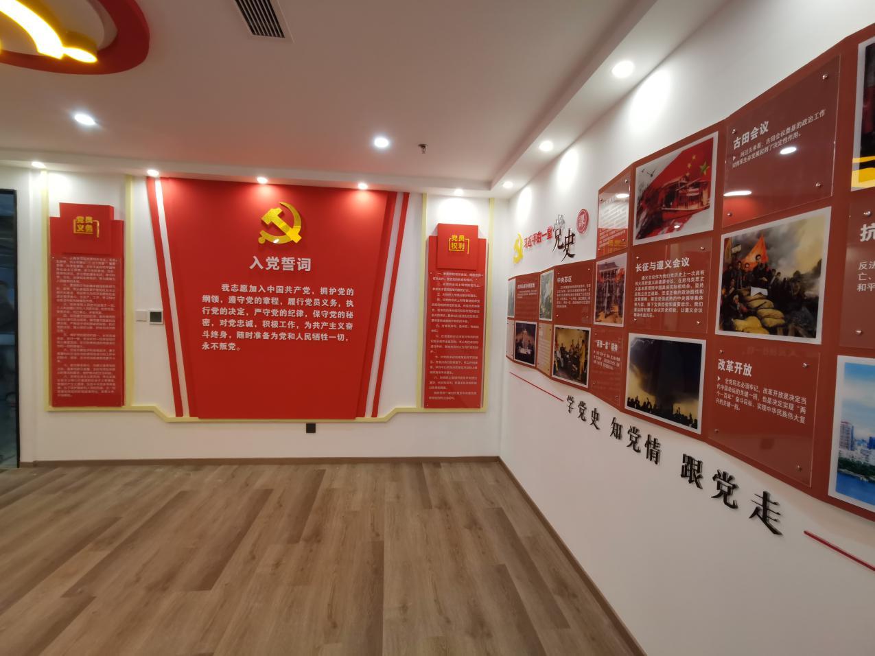 新建成的党员活动中心集合了学习教育、宣传展示、活动交流等功能。以庄严的党徽为中心,四周环绕有党旗、入党誓词、党员的权利和义务、党史、“廉政文化墙” “沂蒙精神”主题教育专栏及微书吧等。