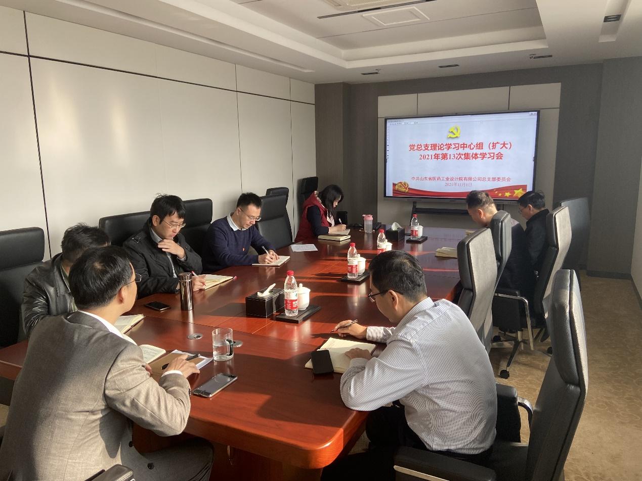 11月1日,省医工设计院党总支书记、董事长兼总经理黄晓东主持召开党总支理论学习中心组(扩大)2021年第13次集体学习会,重点学习习近平总书记在深入推动黄河流域生态保护和高质量发展座谈会上的重要讲话精神及视察山东重要指示批示精神,以及全省领导干部会议精神。