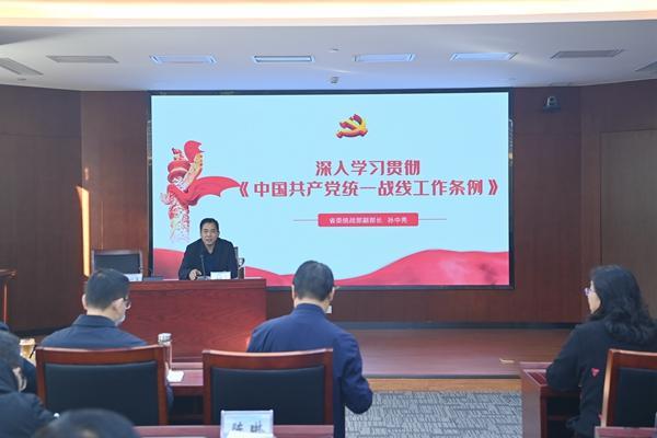 11月11日,山东商院举行党委理论学习中心组(扩大)学习会,深入学习贯彻《中国共产党统一战线工作条例》(以下简称《条例》),省委统战部副部长孙中亮作专题辅导报告。