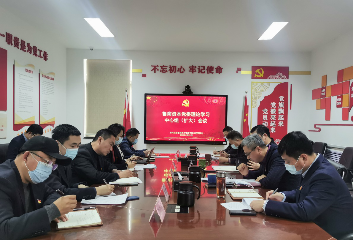 1月21日,鲁商资本党委书记、董事长纪军令主持召开党委理论学习中心组(扩大)2022年第1次集体学习会,集中学习习近平总书记在中共中央政治局专题民主生活会、省部级主要领导干部学习贯彻党的十九届六中全会精神专题研讨班开班式上的重要讲话精神,《中国共产党第十九届中央纪律检查委员会第六次全体会议公报》,以及集团党委书记、董事长兼山东文旅集团董事长高洪雷在集团党委理论学习中心组(扩大)2022年第1次集体学习会上的讲话精神。