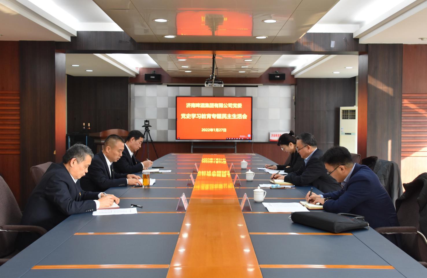 1月27日,济啤集团党委召开党史学习教育专题民主生活会。集团党委第六督导组组长、党委常委、董事、总审计师、工会主席刘德华到会指导,济啤集团党委书记、董事长周雷主持会议。