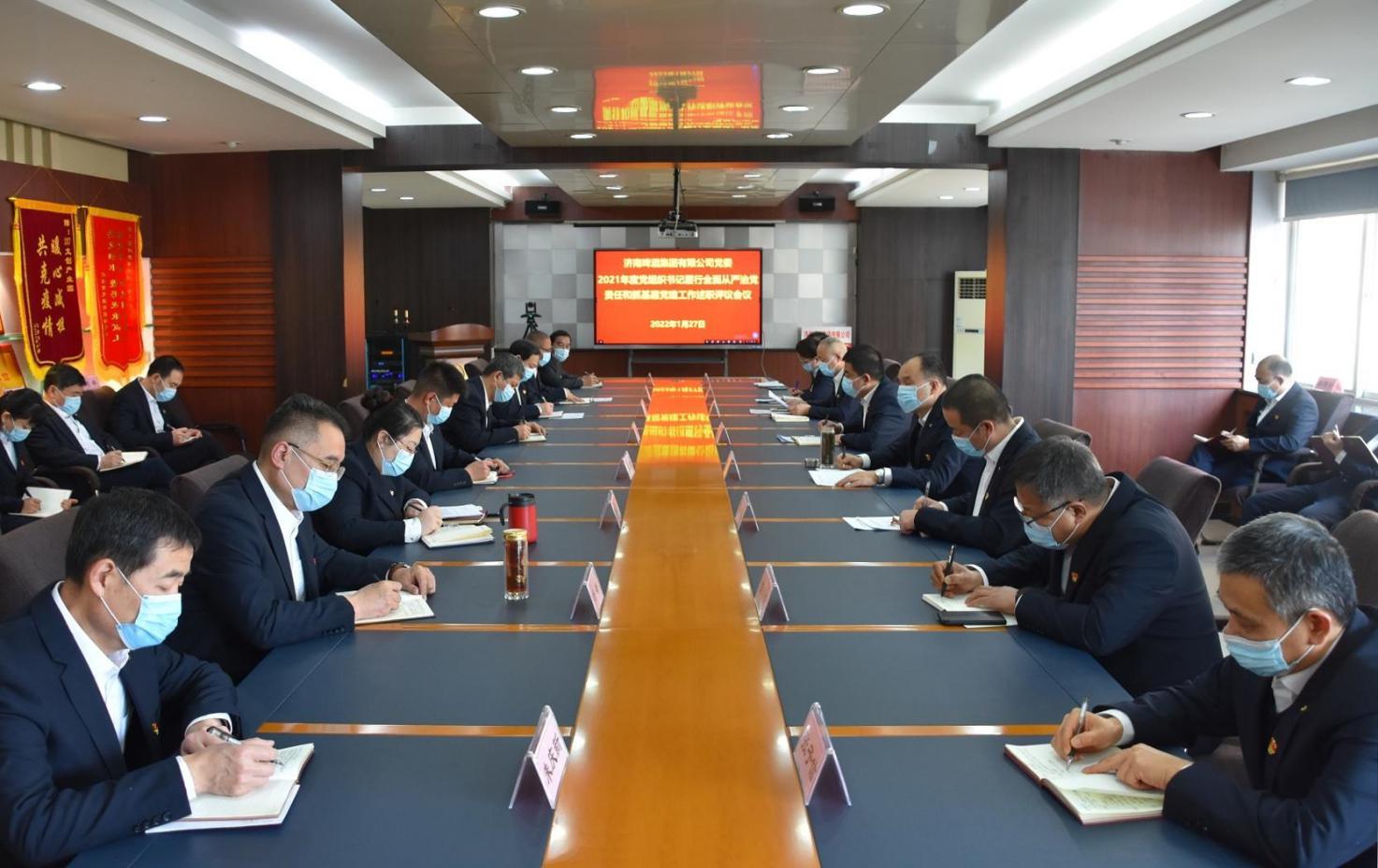 1月27日,济啤集团召开2021年度党组织书记全面从严治党述责述廉和抓基层党建工作述职评议会。公司党委书记、董事长周雷主持会议。