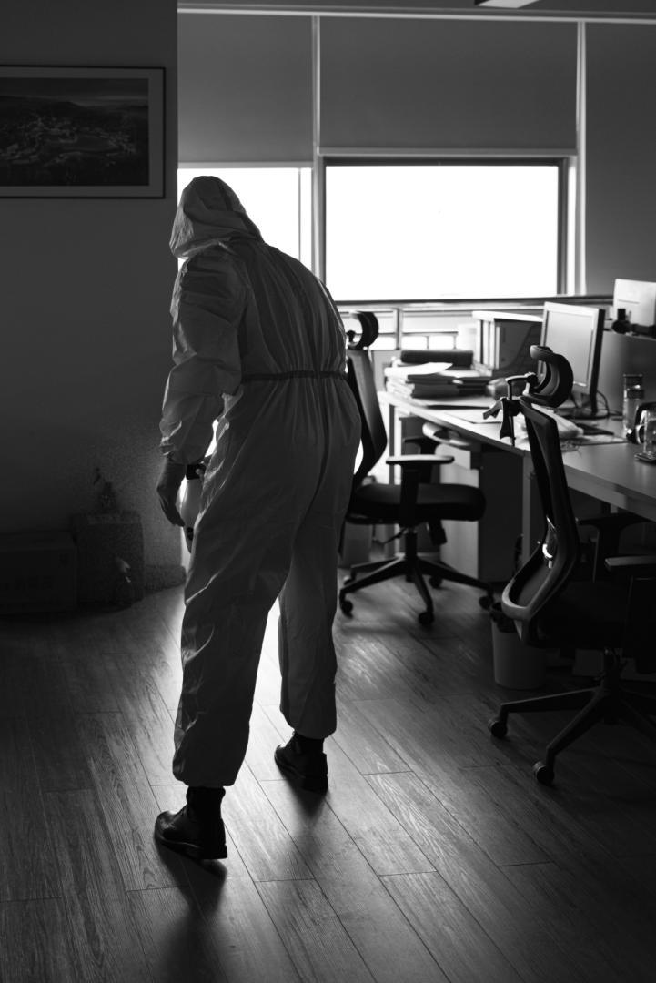疫情发生以来,伊永利每天上班的第一项和最后一项工作,就是穿上防护服,对办公区、电梯厅等重点区域进行消杀,并用消毒湿巾仔细擦拭门把手、呼梯盒,确保消杀无死角、全覆盖。作为一名老党员,47岁的伊永利以实际行动履行诺言,冲锋在前,坚守在抗击疫情的第一线。
