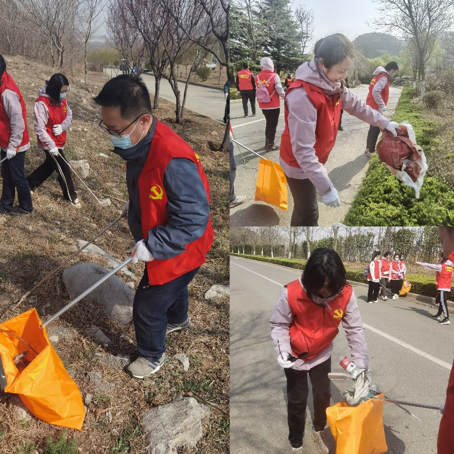在“环湖卫士”学雷锋志愿活动中,全体党员带着垃圾夹、垃圾袋等工具,沿湖清理道路、草地及灌木丛中的塑料袋、纸屑、饮料瓶等垃圾,干得热火朝天。