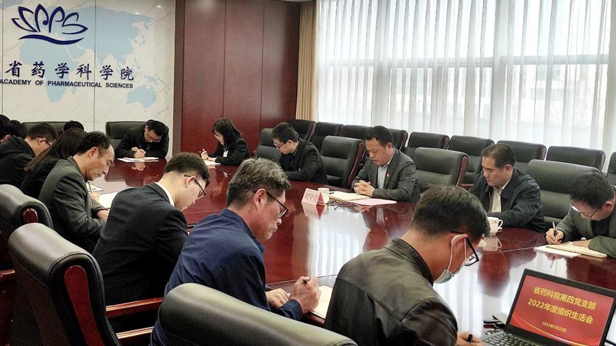 会上,刘守亮听取了省药科院第四党支部2021年度组织生活会整改措施落实情况、2022年支部工作情况以及2022年度组织生活会查摆的问题。随后,支部全体党员依次开展批评与自我批评以及民主测评。