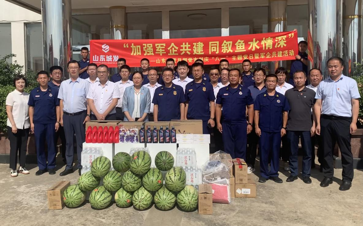 8月1日,山东城发总部党支部前往共建单位长清区万德消防救援站党支部,为消防官兵送去防暑降温慰问品,向其表达节日的问候和崇高的敬意,共叙军民鱼水情谊。