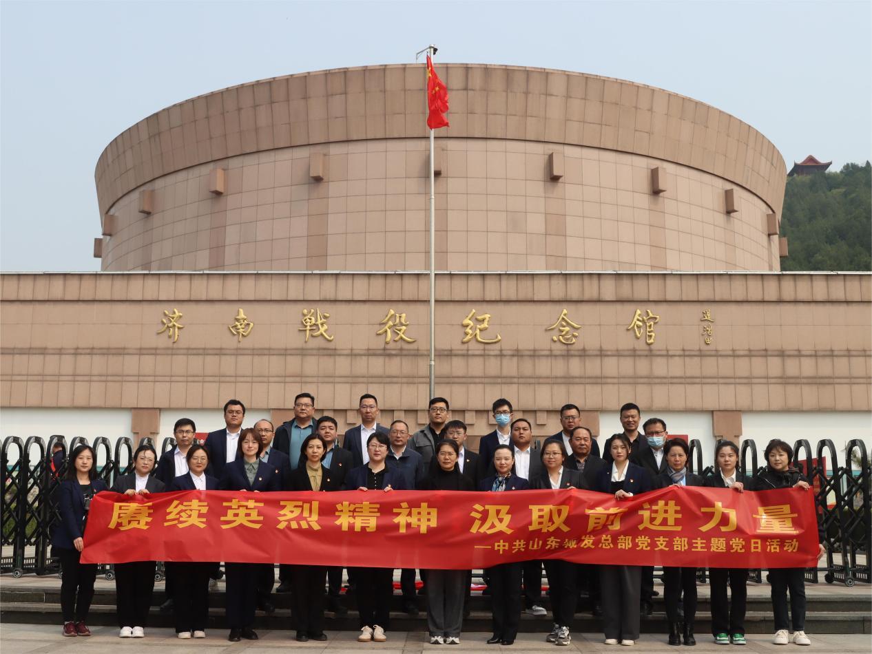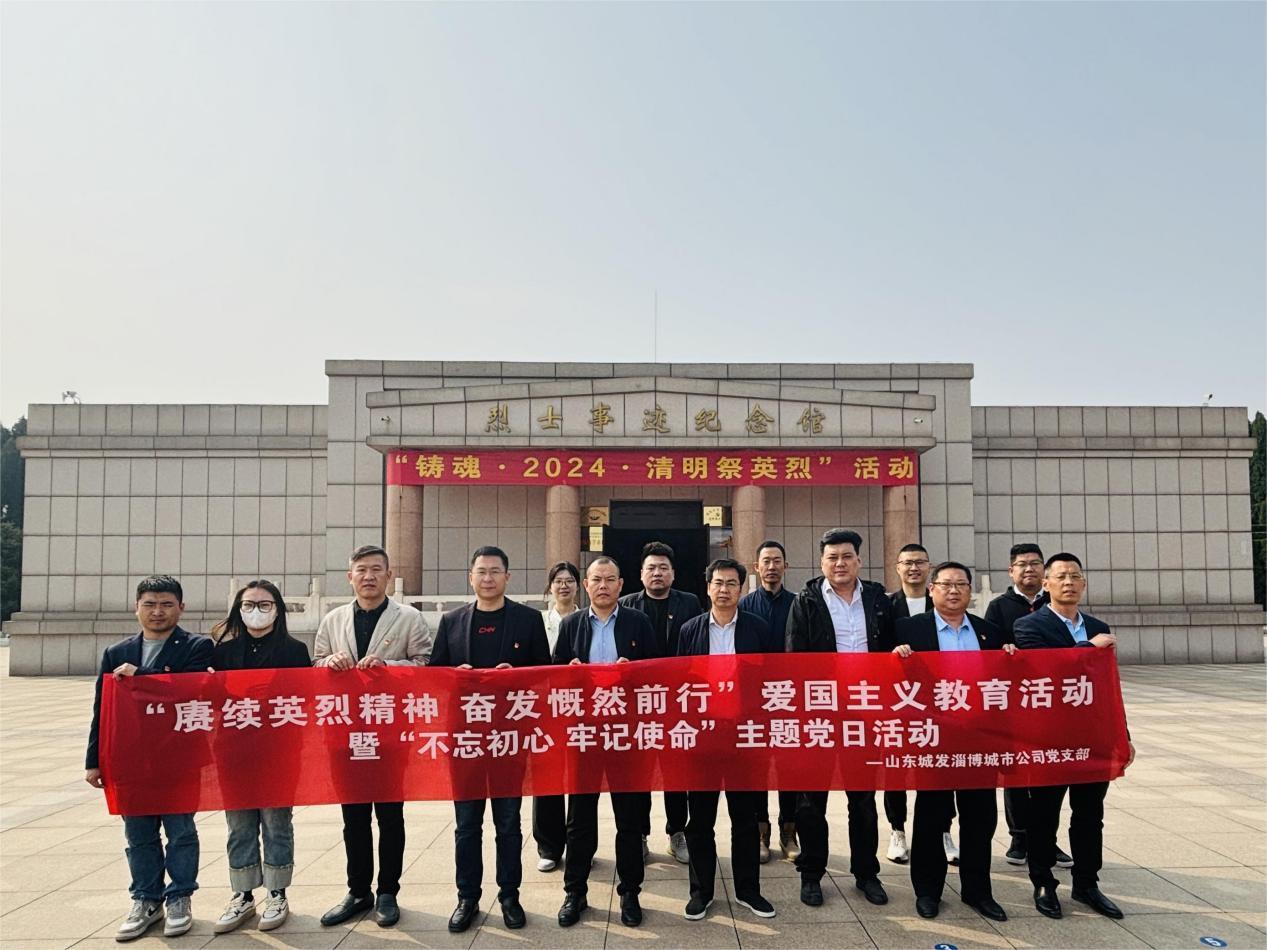 山东城发总部党支部组织党员、入党积极分子及团员赴济南革命烈士陵园,开展“赓续英烈精神 汲取前进力量”主题党日活动。向革命先烈鞠躬致敬、敬献花篮,表达崇高敬意。集体参观济南战役纪念馆聆听革命先烈的感人故事,重温浴血奋战、硝烟弥漫的解放战争历史。