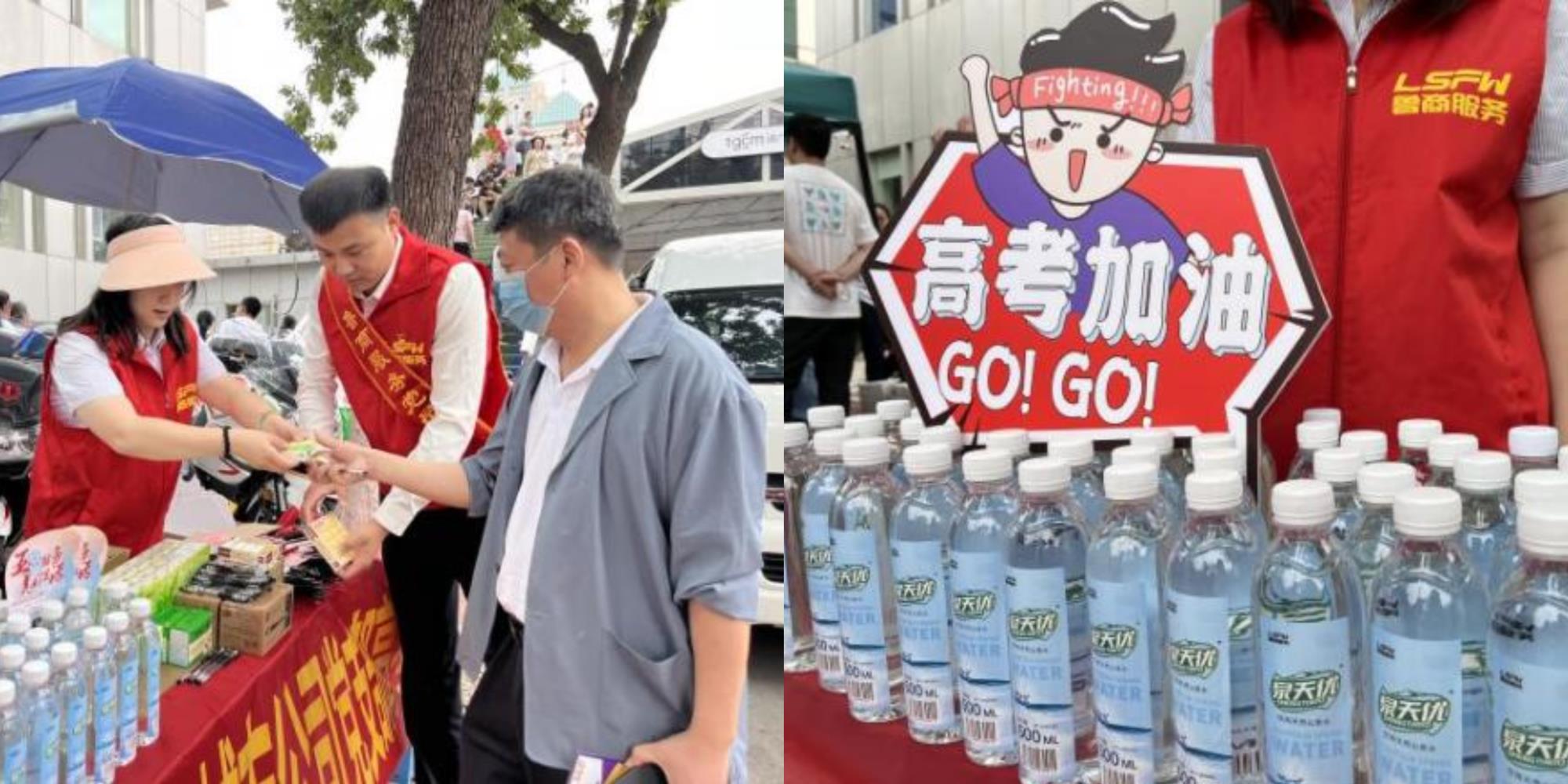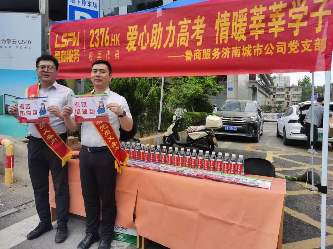 青岛城市公司党支部所属青岛蓝岸丽舍项目,在青岛二中考点附近设立“爱心助考驿站”,志愿者们为即将高考的小业主提供矿泉水等消暑物品,为考生家长们提供免费停车场,并为环卫工人、执勤交警免费分发饮用水及防暑药等物品,共同做好高考保障服务工作。