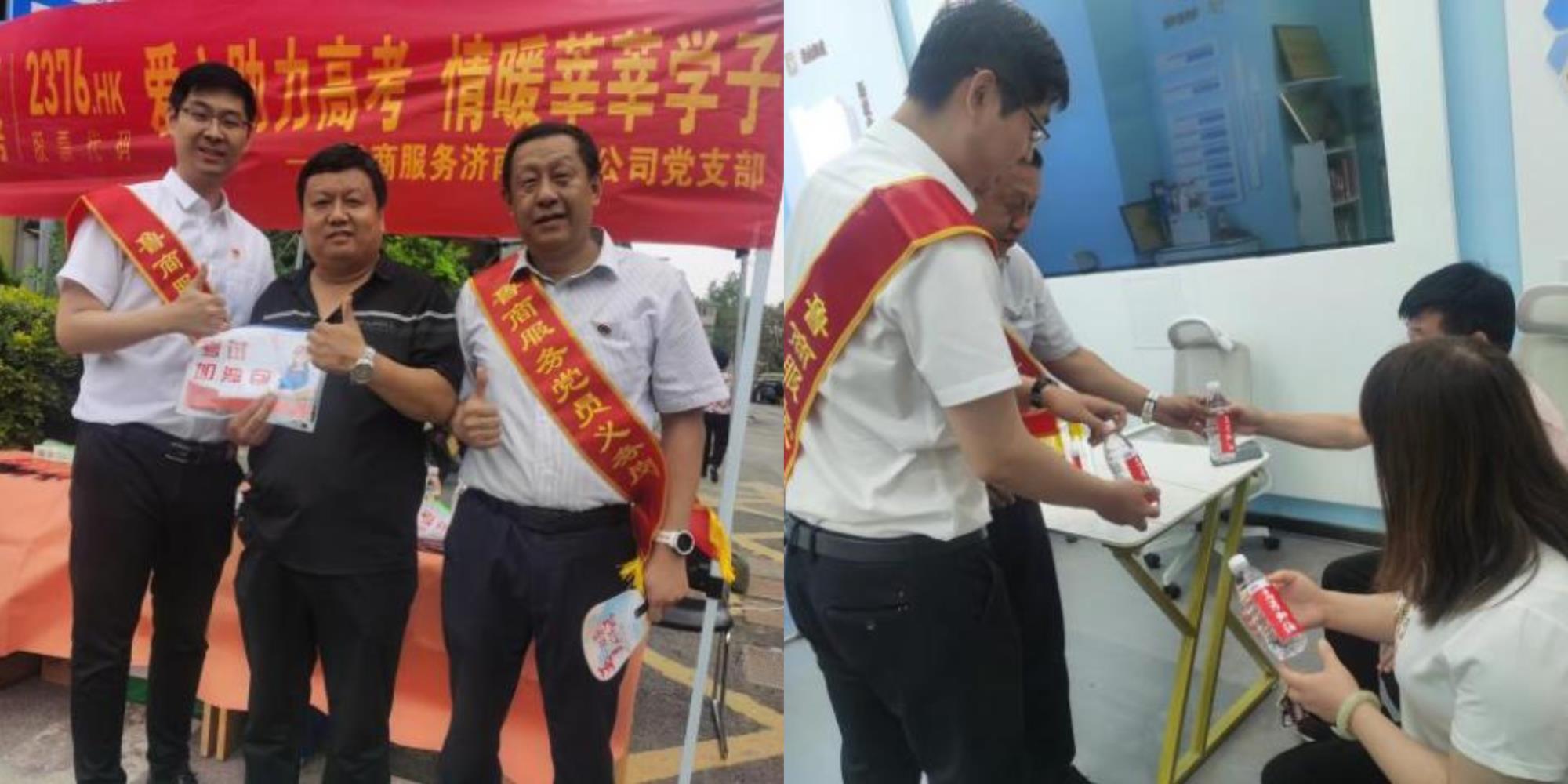 济南城市公司党支部所属银座数码项目与赛博数码广场联合在济南七中考点附近搭建了“爱心助考点”,党员志愿者们及项目员工免费为考生发放矿泉水和“高考加油包”、清凉扇子等物品。同时,党支部还准备了“爱心休息室”,供考生和家长休息,实现了“渴可饮水、累可歇脚、热可纳凉”,助力广大考生安心赴考。