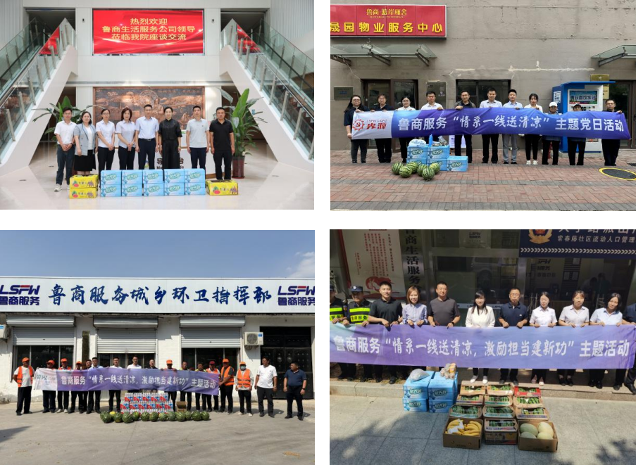 为持续推进“我为群众办实事”实践活动,确保一线职工身心健康和生产安全,鲁商服务党委班子成员深入基层一线,为员工送去矿泉水、西瓜等解暑物资,将党组织和工会的关怀送到员工心坎里,并叮嘱大家在高温期间注意防暑降温,加强自我防护,确保身体健康、工作安全。