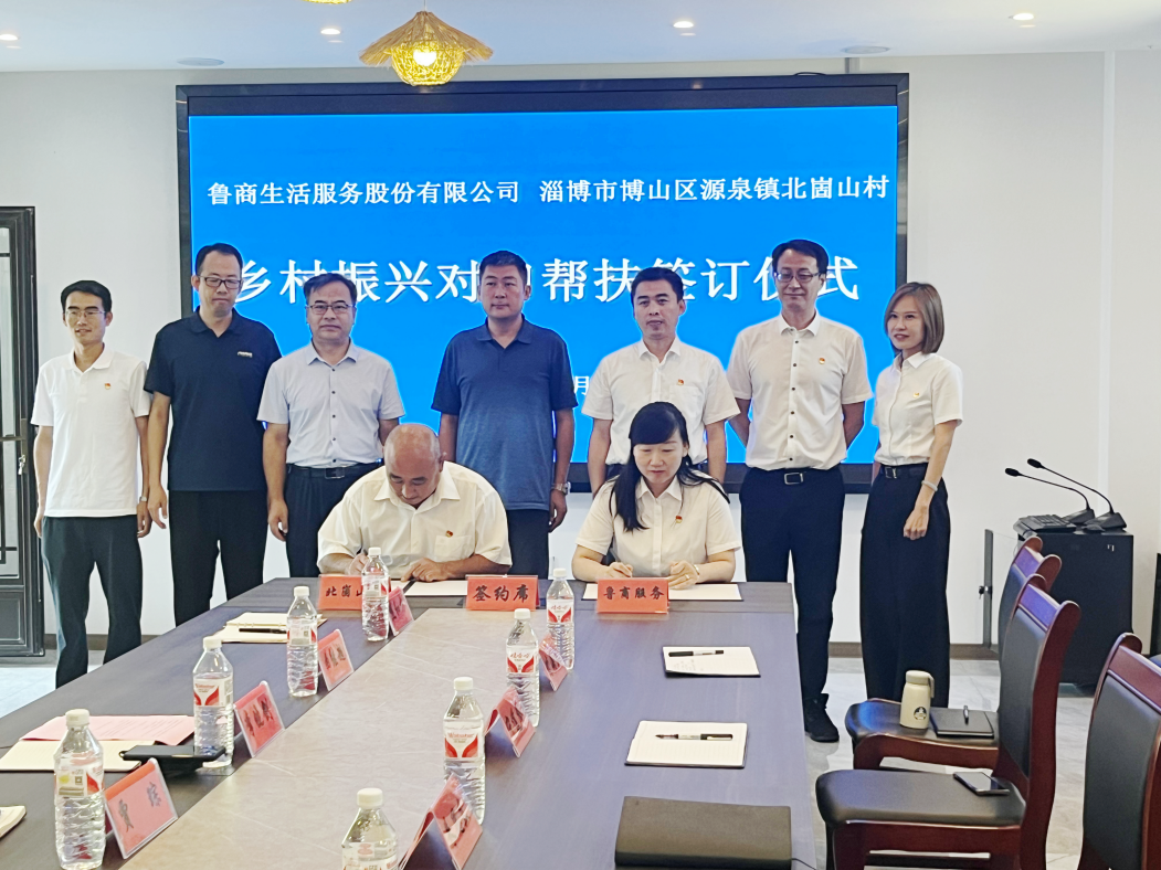 9月7日,鲁商服务与淄博市博山区源泉镇北崮山村委举办“乡村振兴对口帮扶”协议签约仪式暨党建共筑共建活动。