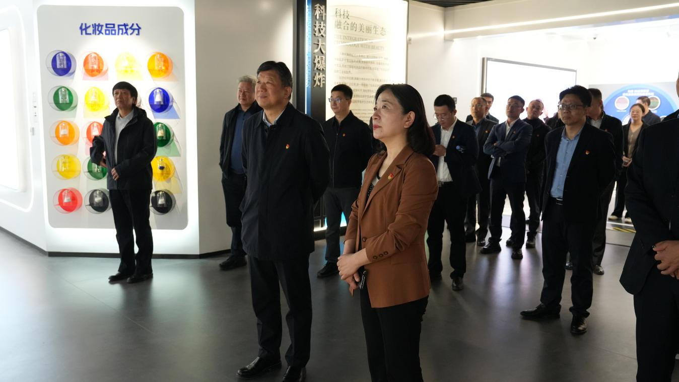 张莉一行参观了以“为人类美好生活创造美”为主题的福瑞达世界美妆科技馆,通过“场景、实物、多媒体互动”等形式,深刻感受到世界美妆科技发展变迁、最新成果及未来趋势,深刻体会到集美妆文化、科普教育、科技体验、学术交流等功能于一体的美妆文化科技新地标的魅力,深入了解了福瑞达发展历程,并对福瑞达在科技创新、品牌建设、品质管理、产业园建设等方面取得的成绩表示充分肯定。
