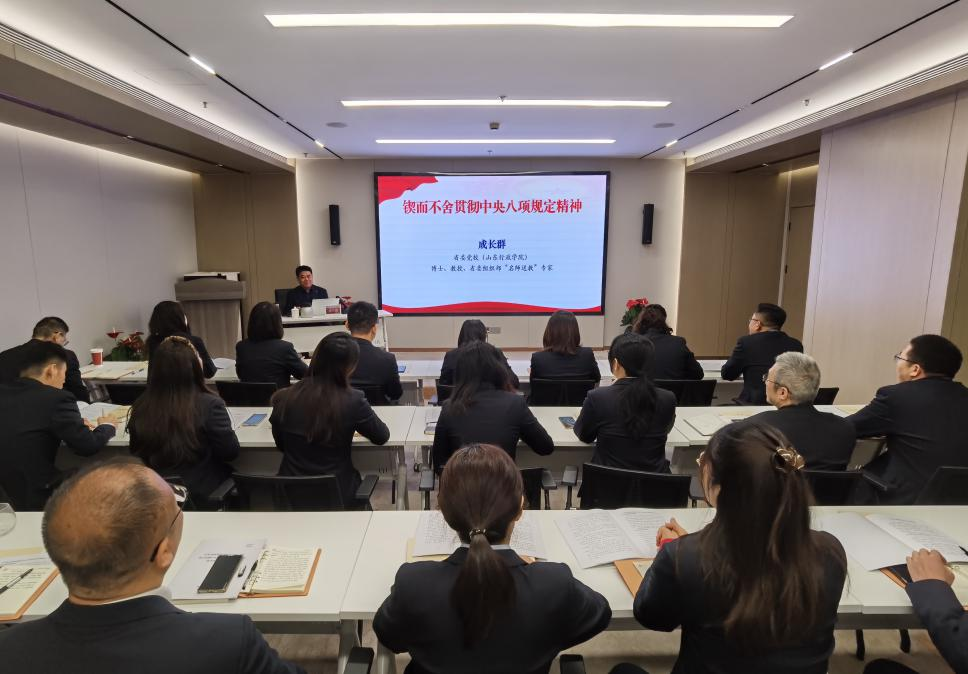 读书班期间,全员通过集中学习、个人自学和分组交流研讨等方式,认真学习了习近平总书记关于加强党的作风建设的重要论述和中央八项规定及其实施细则精神,中共山东省委党校(山东行政学院)成长群教授作《锲而不舍贯彻中央八项规定精神》专题授课。