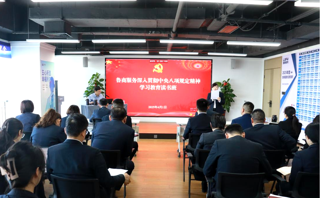 4月1日至2日,鲁商服务举办深入贯彻中央八项规定精神学习教育读书班,深学细悟习近平总书记关于加强党的作风建设的重要论述,深入学习领会中央八项规定及其实施细则精神,以领导干部的先学先行,示范带动各党支部和党员扎实开展学习教育。