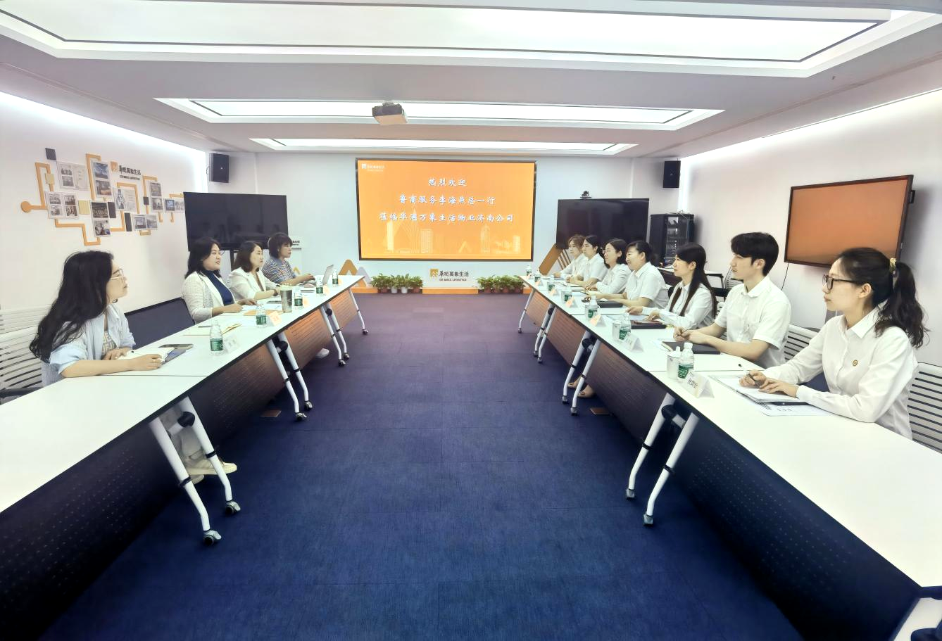 在华润物业济南分公司,大家首先参观了办公区廊厅文化建设,沉浸式感受其独特的党建文化氛围与企业精神内涵。随后,华润物业就党建引领、红色物业建设、品牌建设等方面进行了经验分享,双方围绕党建引领机制、社区治理模式、服务创新举措、信息化建设以及党建与生产经营深度融合等核心议题展开了深入交流探讨,并结合自身在实际工作中遇到的难点问题进行了充分且富有成效的沟通,大家各抒己见,相互学习借鉴。