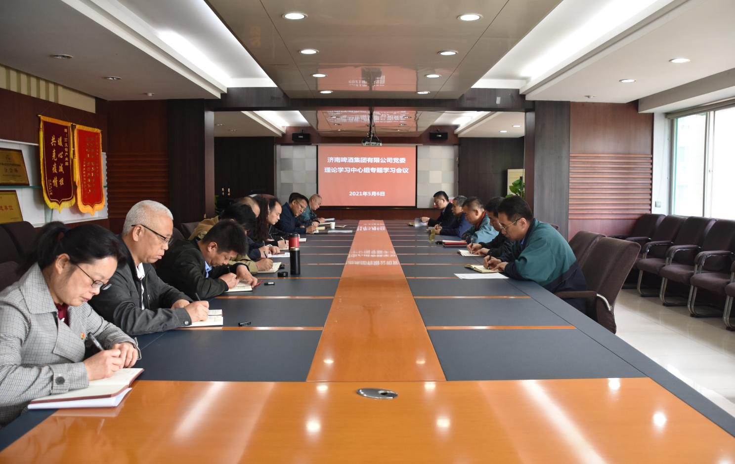 5月6日,济啤集团召开党委理论学习中心组(扩大)专题学习会议,集中学习《中国共产党简史》相关内容,深入贯彻集团党委理论学习中心组(扩大)2021年第6次集体学习会议精神。公司党委书记、董事长周雷主持会议。