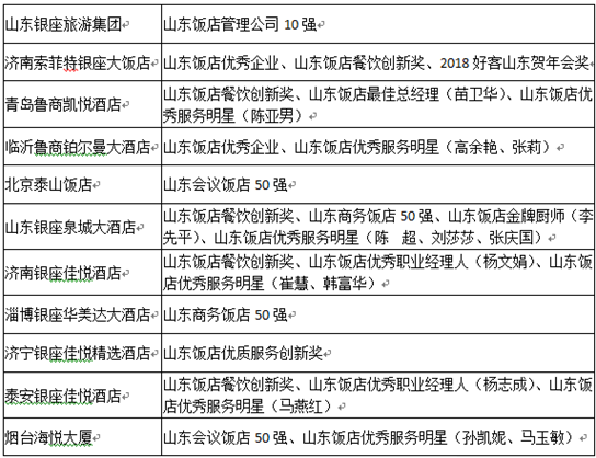 3月9日,2017年度山东省饭店行业颁奖仪式在济南举行。山东银座旅游集团有限公司入选山东饭店管理公司10强,旗下多家单位荣获2017年度山东省饭店行业多项大奖。