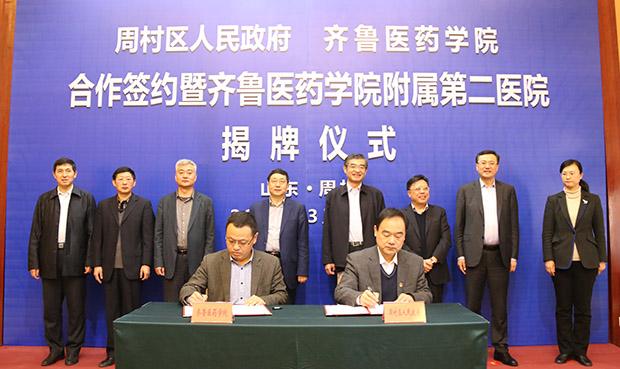 3月19日,齐鲁医药学院与淄博市周村区政府合作签约暨齐鲁医药学院附属第二医院揭牌仪式在周村宾馆举行,淄博市副市长盖卫星与山东省商业集团有限公司(以下简称鲁商集团)党委副书记、总经理凌沛学为齐鲁医药学院附属第二医院揭牌,周村区委书记沙向东等领导致辞,周村区委副书记、区长刘伟与鲁商集团党委副书记、齐鲁医药学院董事长刘守亮签署合作协议。此举掀开了周村区校城合作的新篇章。