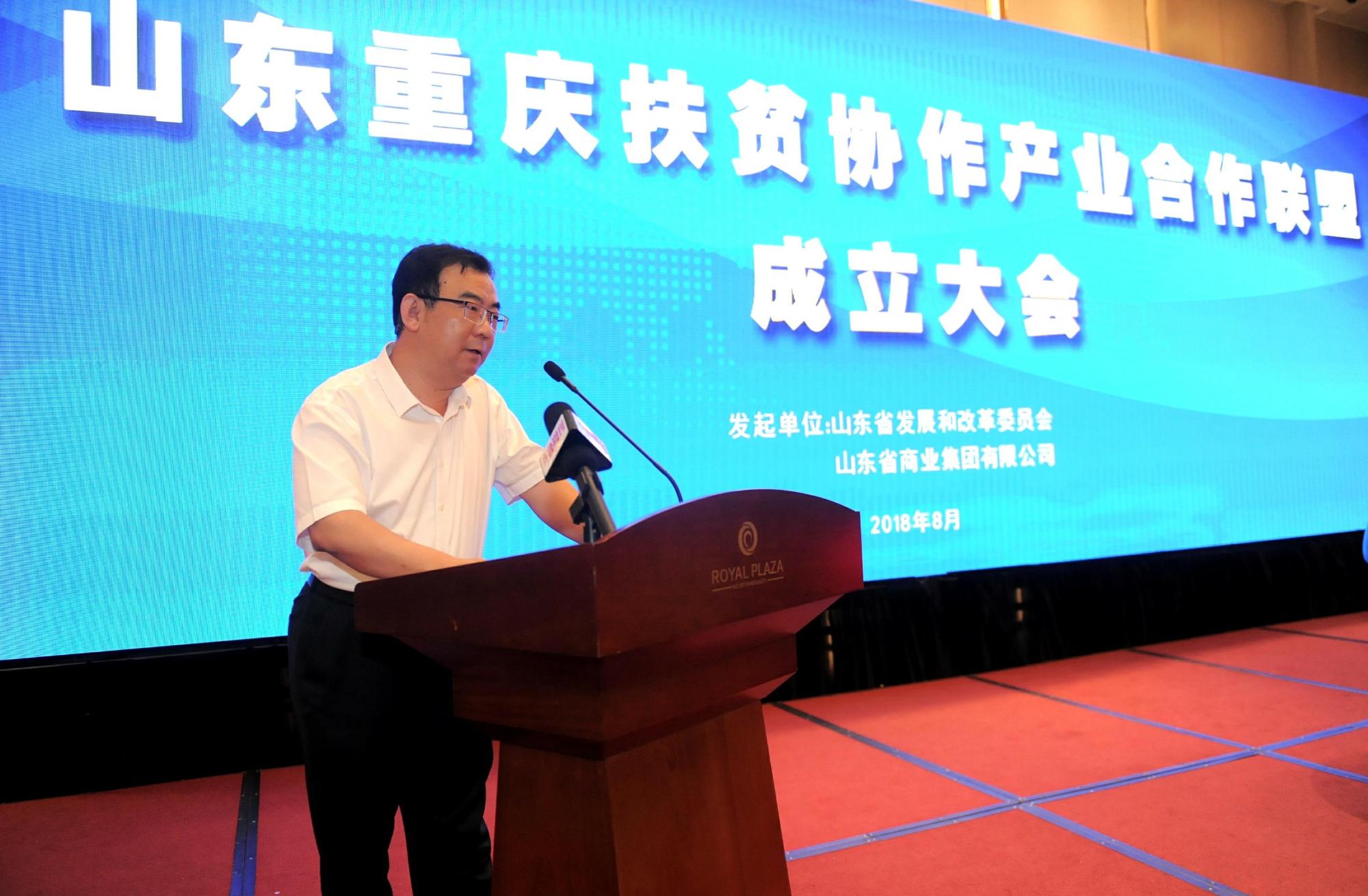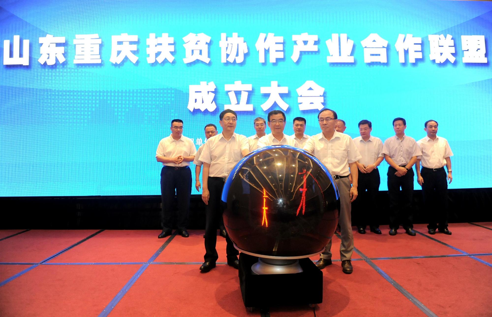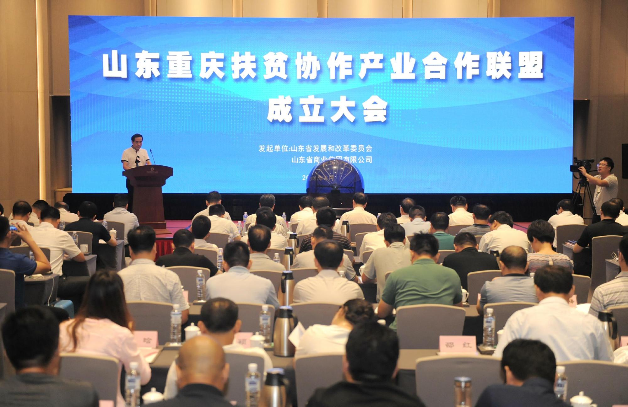 8月17日下午,山东重庆扶贫协作产业合作联盟(简称鲁渝扶贫产业联盟)成立大会在济南召开。会上,山东省发改委、山东扶贫协作重庆干部管理组、山东省商业集团有限公司(简称鲁商集团)共同发起成立鲁渝扶贫产业联盟,积极推动鲁渝扶贫协作,促进两地产业合作共赢,成为政府与企业的沟通桥梁和扶贫产业协同平台。