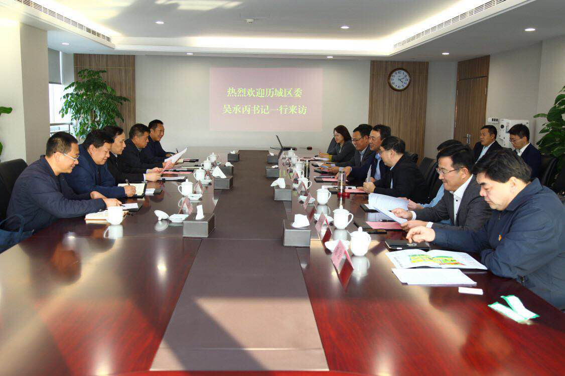 10月18日下午,济南市历城区区委书记吴承丙,副区长尹少华一行5人,到鲁商集团走访交流。鲁商集团党委书记、董事长高洪雷,党委副书记、总经理凌沛学,党委副书记刘守亮,党委委员、副总经理李彦勇热情接待并座谈。