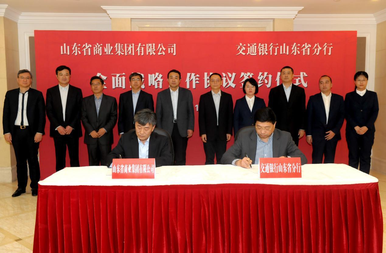 11月13日下午,鲁商集团与交通银行山东省分行签署全面战略合作协议。鲁商集团党委书记、董事长高洪雷, 交通银行山东省分行党委书记、行长于启春出席签约仪式并致辞。鲁商集团副总经理张志强与交通银行山东省分行副行长赵秀军代表双方签署合作协议。