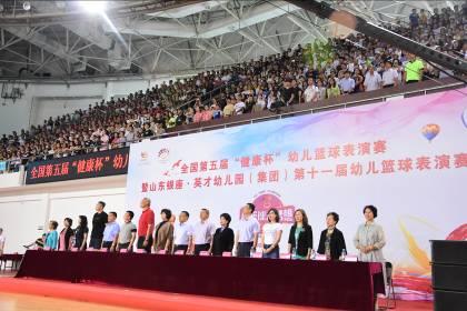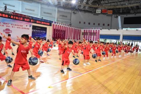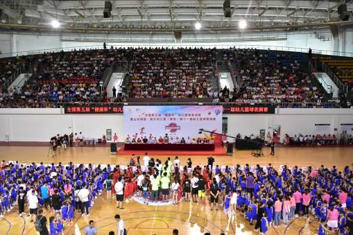 6月16日上午8:00,由中国民办教育协会学前教育专业委员会主办,山东银座·英才幼儿园(集团)(以下简称银座幼教)、北京银座教育集团承办,山东省篮球运动协会(以下简称省篮协)特别指导的全国第五届“健康杯”幼儿篮球表演赛暨银座幼教第十一届幼儿篮球表演赛于济南市历城区体育中心拉开帷幕。来自全国七省市58支代表队的近1200名幼儿齐聚泉城,参加了本次幼儿篮球盛事。