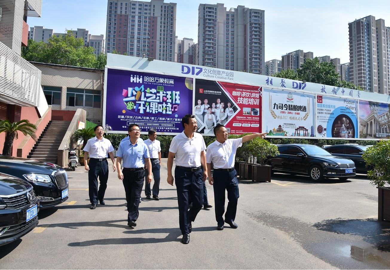 高洪雷首先实地调研了D17文化创意产业园区,对济啤集团利用自身工业遗产和丰富的啤酒文化底蕴打造全国一流文化产业园的发展思路、整体布局和未来规划进行了解。