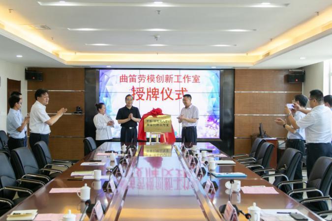 7月8日在城市学院,李香军与学院党委书记宋宁共同为“劳模(高技能人才)曲笛创新工作室”揭牌。曲笛作为城市学院的优秀年轻教师代表,在世界技能大赛上屡创佳绩,曾受到国务院总理李克强,山东省委副书记、省长龚正分别接见。