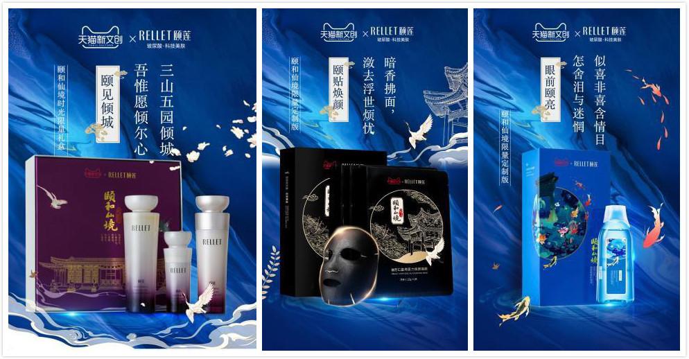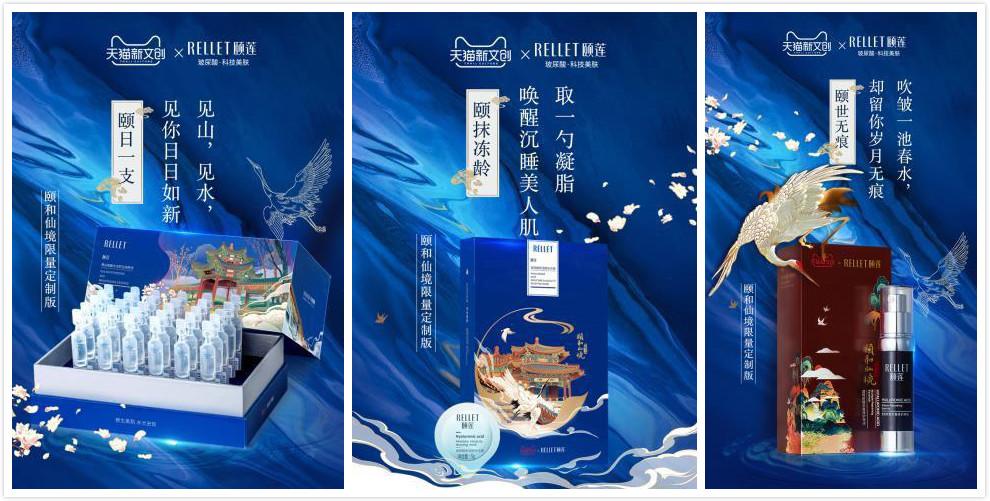 作为颐和园文创的优秀代表之一,福瑞达美业旗下主打科技美肤的玻尿酸品牌颐莲,和立白、顾家等众多中国优秀品牌一起亮相展览。展出的“颐和仙境”系列产品,巧妙融合颐和园风物、渲染国风意蕴,将如梦如幻的颐和园美景与行业顶级玻尿酸护肤应用科技完美结合,赋予传统文化以新的活力。产品主题插画均取自于颐和园长廊等古代园林,以充满古典韵味的玄色、靛蓝等作为底色,又以金色线条为主勾勒出亭台水榭,与本次数字光影艺术展相得益彰、交相辉映。别具一格的设计,也使得“颐和仙境”成为最具特色的参展品牌之一。