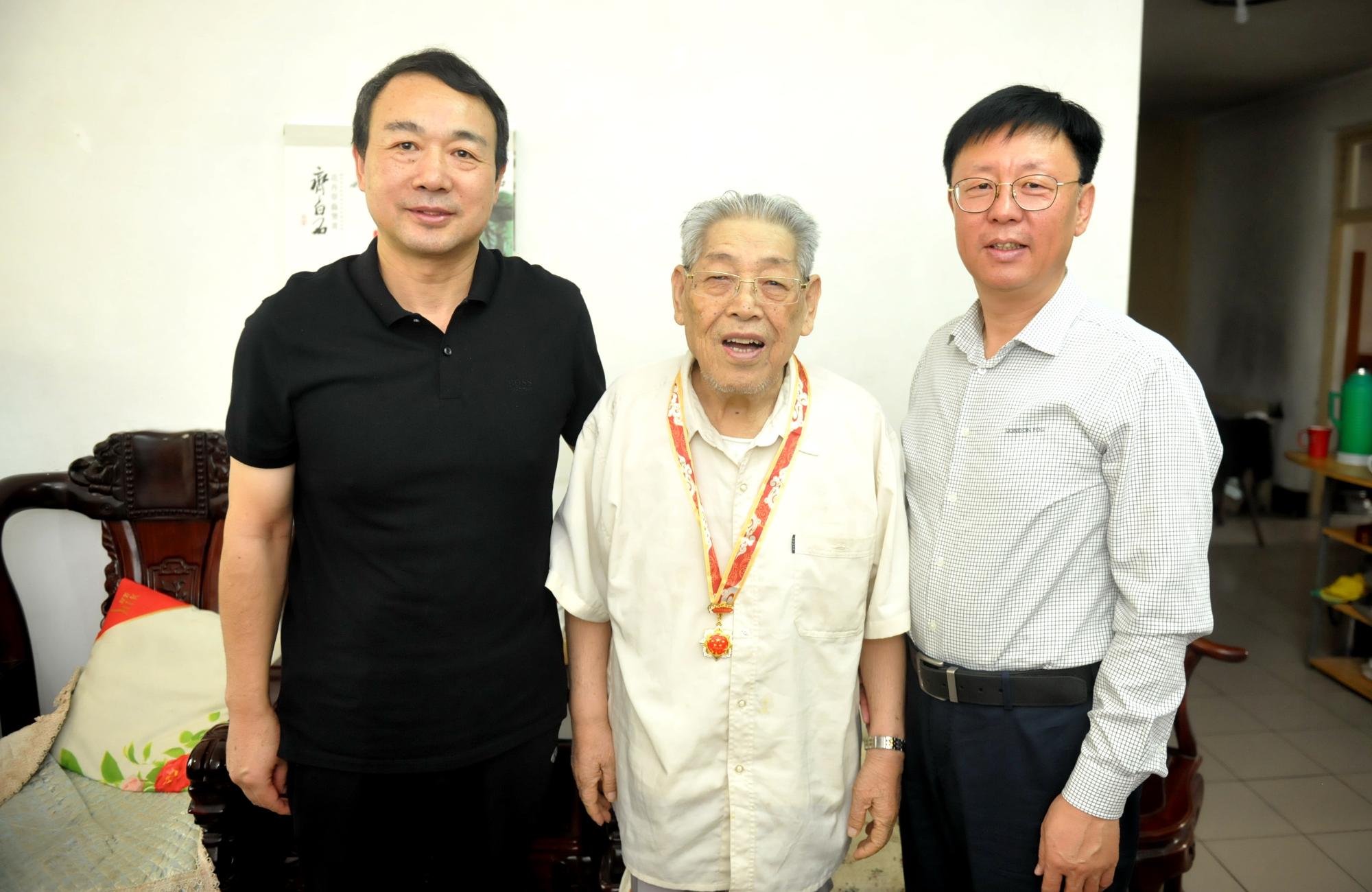 在庆祝中华人民共和国成立70周年之际,9月23日上午,省商业集团有限公司(简称鲁商集团)党委书记、董事长兼省文旅集团董事长高洪雷,走访慰问了集团离休老干部卢翔飞,并向老人发放由中共中央、国务院、中央军委颁发的“庆祝中华人民共和国成立70周年”纪念章。集团党委常委、组织人力资源部部长李林陪同。