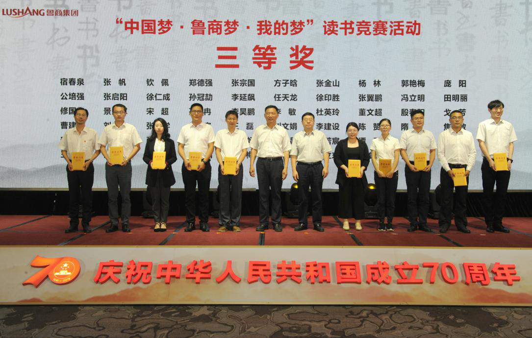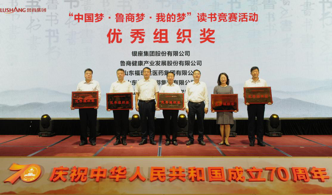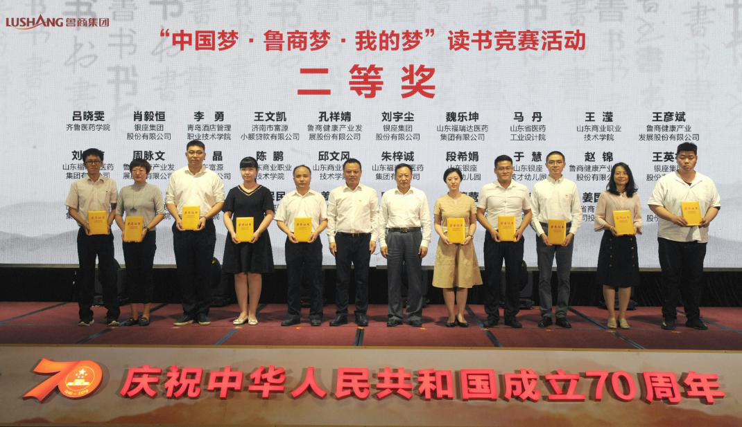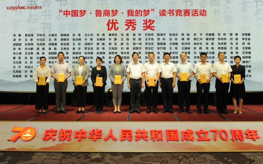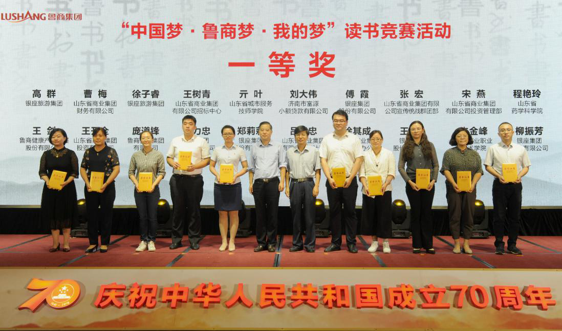 用书香守候初心,品读中追寻梦想。“中国梦·鲁商梦·我的梦”读书竞赛活动共评选出一等奖20名,二等奖30名,三等奖60名,优秀奖200名,优秀组织奖5家单位。颁奖典礼上,高洪雷、凌沛学为银座集团、鲁商发展、福瑞达医药集团、银座旅游集团、山东商院等5家单位颁发优秀组织奖;姬德君,陈文东,周尊考,刘守亮,鲁商集团党委常委、纪委书记黎京庭,党委常委、工会主席李香军,党委常委、组织人力资源部部长李林,副总经理李彦勇为获奖代表颁奖。
