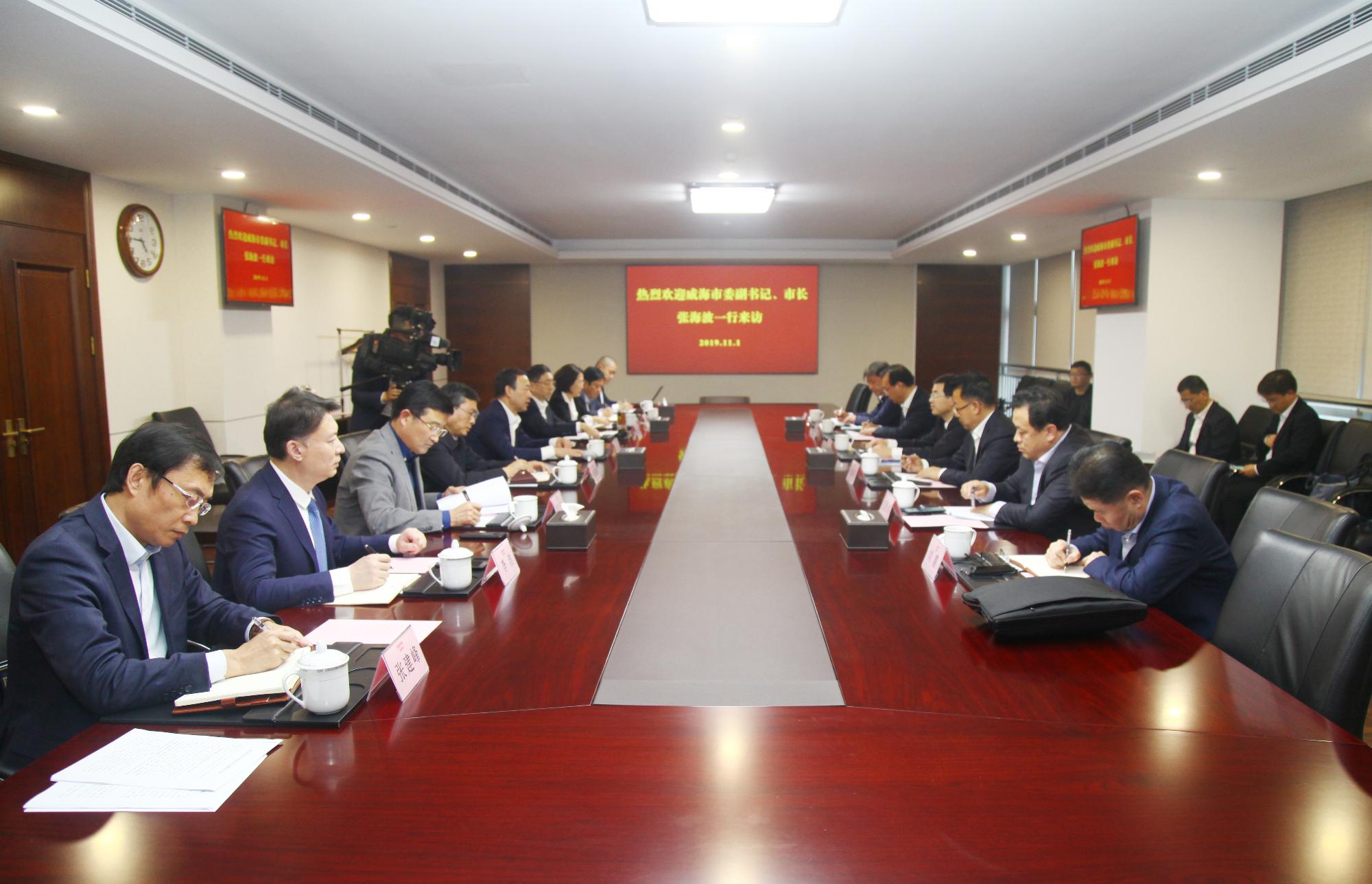 11月1日,省商业集团有限公司(以下简称鲁商集团)党委书记、董事长兼省文旅集团董事长高洪雷,在济南会见来访的威海市委副书记、市长张海波一行,双方就乡村振兴、文化旅游、大健康等领域合作进行深入交流。鲁商集团党委副书记、总经理凌沛学,副总经理姜国栋,威海经区党工委书记、管委主任吕晓东,威海市政府秘书长王清参加会见。