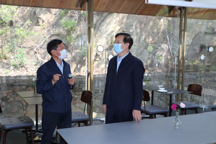 4月15日,省市场监管局党组书记、局长侯成君一行到鲁商九女峰乡村旅游度假区调研,泰安市副市长袁久党,岱岳区委书记刘昌松,区委常委、区委办公室主任刘灿玉,副区长、区财政局局长钱振华陪同。岱岳区道朗镇、鲁商九女峰乡村振兴有限公司相关负责人陪同。(王玉龙)
