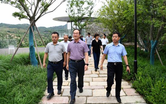 7月3日,省委统战部副部长、省工商联党组书记周云平一行到九女峰项目调研。鲁商集团党委副书记兼山东文旅集团总经理刘守亮,泰安市人大常委会副主任、工商联主席王淑玲陪同。