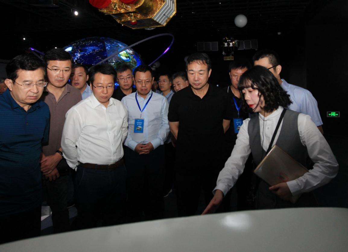 高洪雷一行首先参观了德清地理信息小镇。小镇位于湖州莫干山国家高新区地理信息产业园区块,2018年9月被命名为省级特色小镇,当年11月成功举办首届联合国世界地理信息大会。小镇以地理信息产业为核心,坚持“产、城、人、文”交融理念,目前已颇具规模。