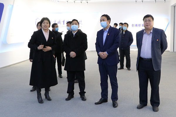 宣讲报告会后,高洪雷陪同王可实地调研了山东商院现代服务业大楼,参观了学校展厅、现代商务服务产教融合中心。王可对学校的创新创业教育开展情况、师资队伍建设、无水活鱼技术、农产品跨境运输以及由学生自主完成的VR视觉营销实战项目等进行了深入了解,并予以充分肯定。
